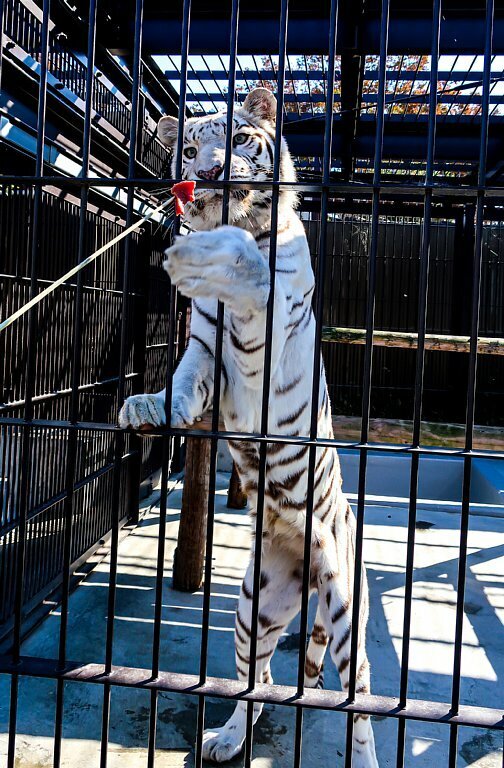 動物園ホワイトタイガーのおやつタイム