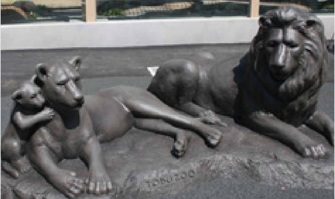 展示場の正面には、等身大のライオンオブジェ。記念写真の撮影スポットに最適です。
